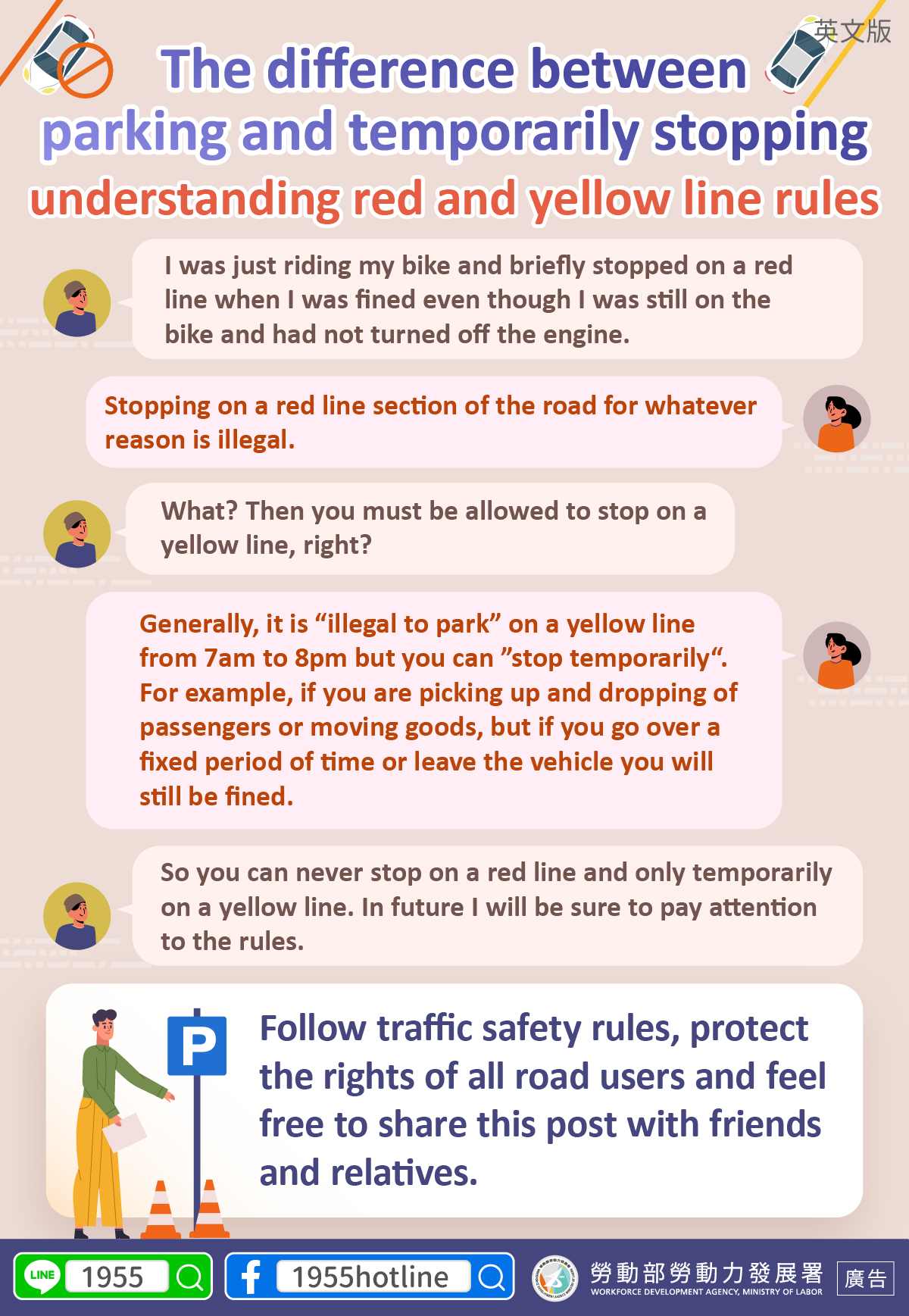 👤 B:不行喔~只要停在紅線路段,不管你有沒有下車、熄火,都算違規!